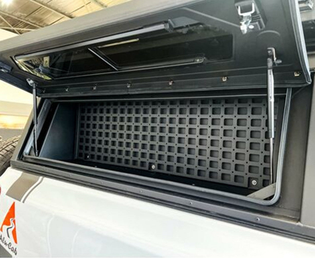 Inside, the Contour features full-length side-access doors that make organizing your truck bed effortless — no crawling, no wasted space. The integrated T-slot channels throughout the canopy provide mounting options for everything from molle panels to custom 12V lighting setups, making it the perfect foundation for both work and overland canopy builds.