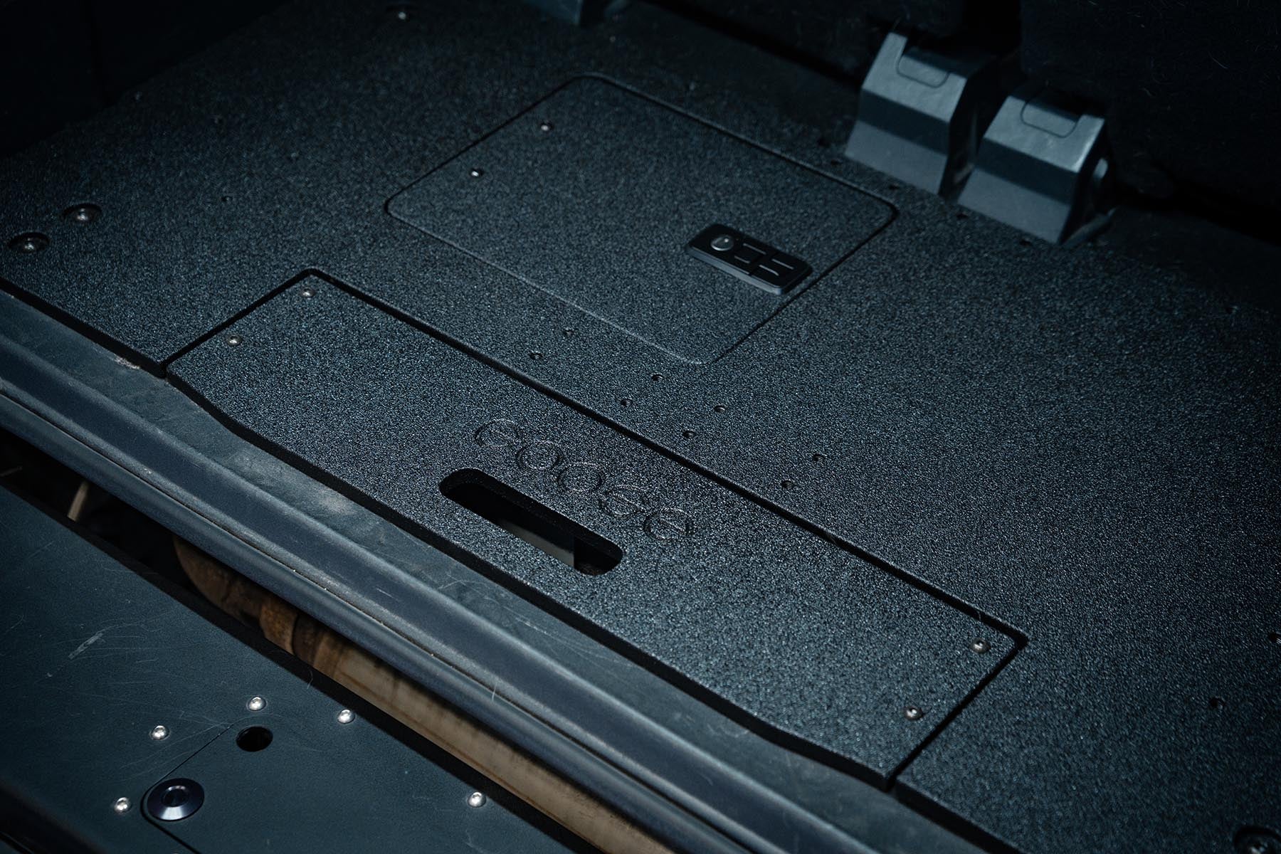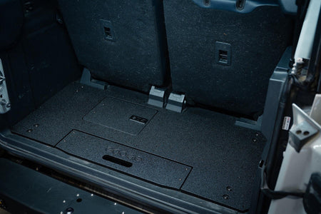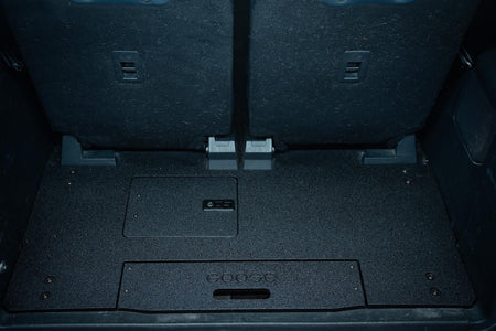 This system requires the removal of the rear factory slide and carpet kit. Does not require cutting or drilling of any part of the vehicle. Once the plate is installed you now have a clean and flat surface, add the Seat Delete Plate System™ for the perfect space to mounting Goose Gear Modules or your own storage system and accessories.