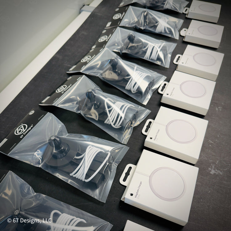 Click here to learn why 67 Designs will not recommend anything but an Apple MagSafe Charger and advises all to avoid potentially dangerous white label chargers.