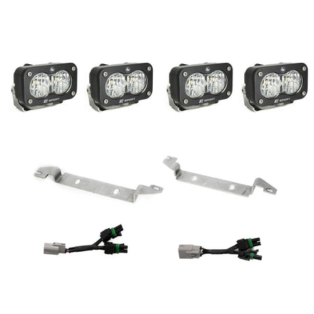 The Baja Designs S2 Sport Fog light replacement kit for the 2024-on Toyota Tacoma TRD Pro/Trailhunter models are designed to replace your factory fog lights while maintaining the OEM fit and finish. This premium LED off-road lighting kit is configured with four S2 Sports offering 1,581 raw lumens each to illuminate zones 1 and 2 in front of your vehicle makes this the perfect trail ready solution. Included within the kit is mounting brackets, mounting hardware and splitter harnesses that allow use of the stock switch. All Baja Designs lights are backed by our 30-day satisfaction guarantee and lifetime limited warranty for the ultimate in purchase protection.
